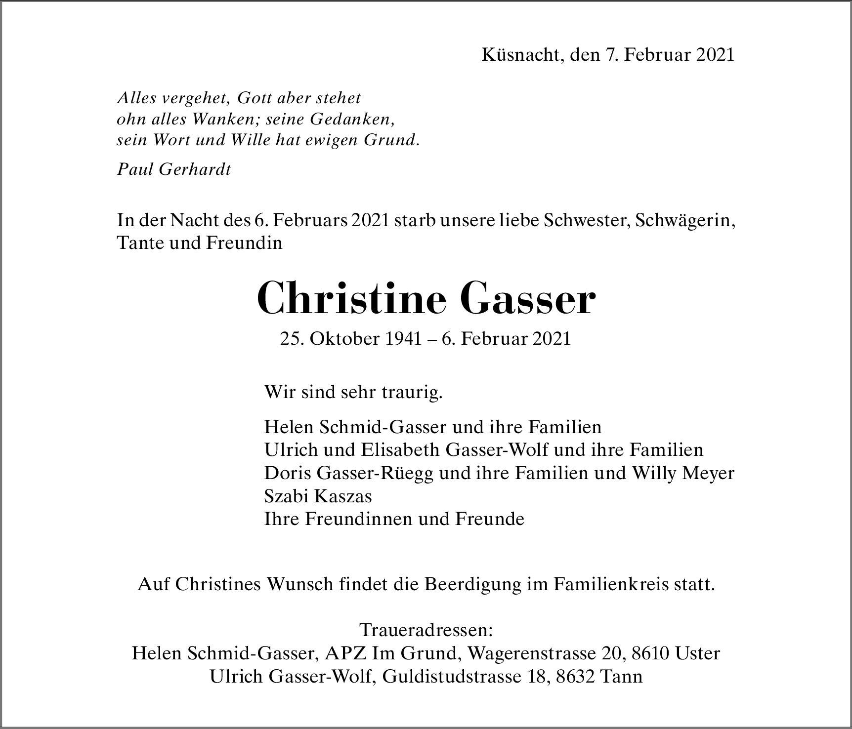 Möchten Sie über neue Todesanzeigen und Kondolenzen für diesen Verstorbenen informiert werden?