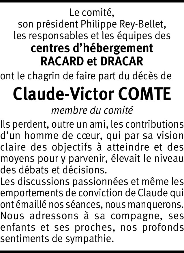 A la famille de Claude, à sa sœur, je présente mes condoléances, sachant que Claude a été un ami fidèle dont je garderai le souvenir. Bien à vous.