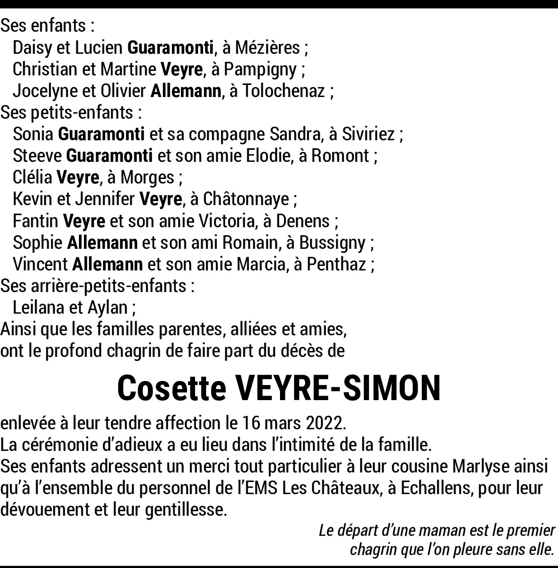 Bien en pensées avec votre famille. Sincères condoléances Guy et Monique