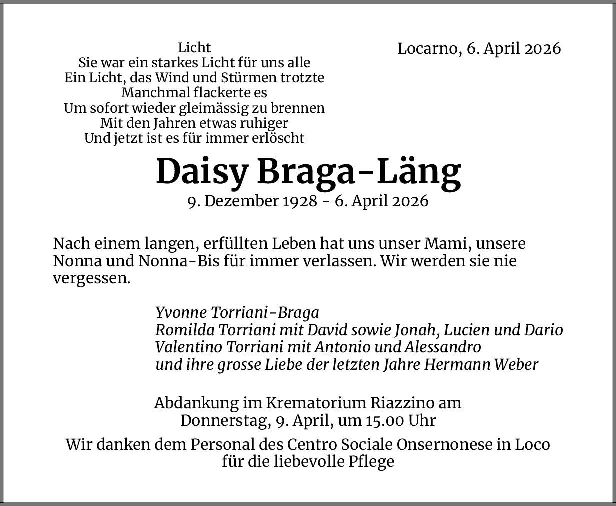 Möchten Sie über neue Todesanzeigen und Kondolenzen für diesen Verstorbenen informiert werden?