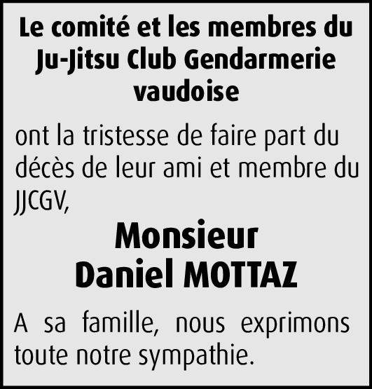 Je vous transmet mes sincères condoléances pour le décès de Daniel. Je l'ai côtoyé de nombreuses années et j'en garderai un bon souvenir. Il avait son caractère et son franc-parler mais ce qui faisait son charme. Je me souviendrai d'un passionné de voitures et d'une personne pleine d'énergie. Police cantonale vaudoise secteur bâtiment.