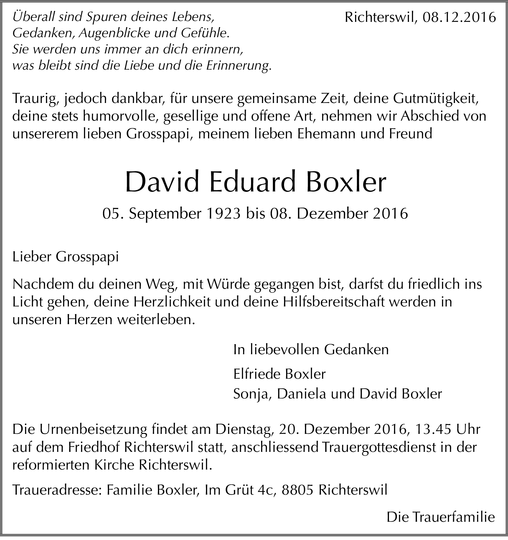 Möchten Sie über neue Todesanzeigen und Kondolenzen für diesen Verstorbenen informiert werden?