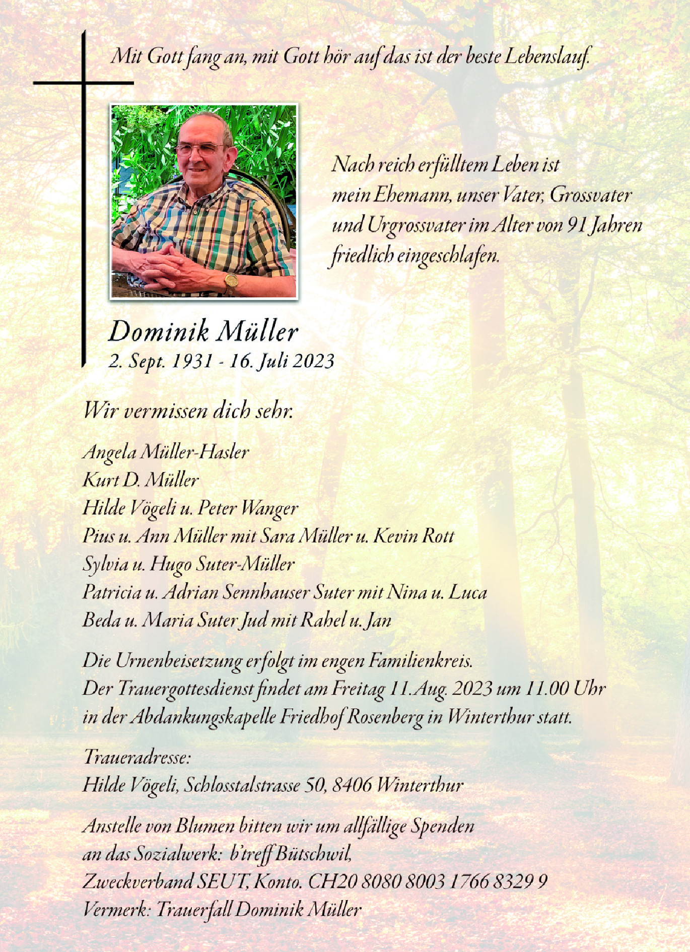 Möchten Sie über neue Todesanzeigen und Kondolenzen für diesen Verstorbenen informiert werden?