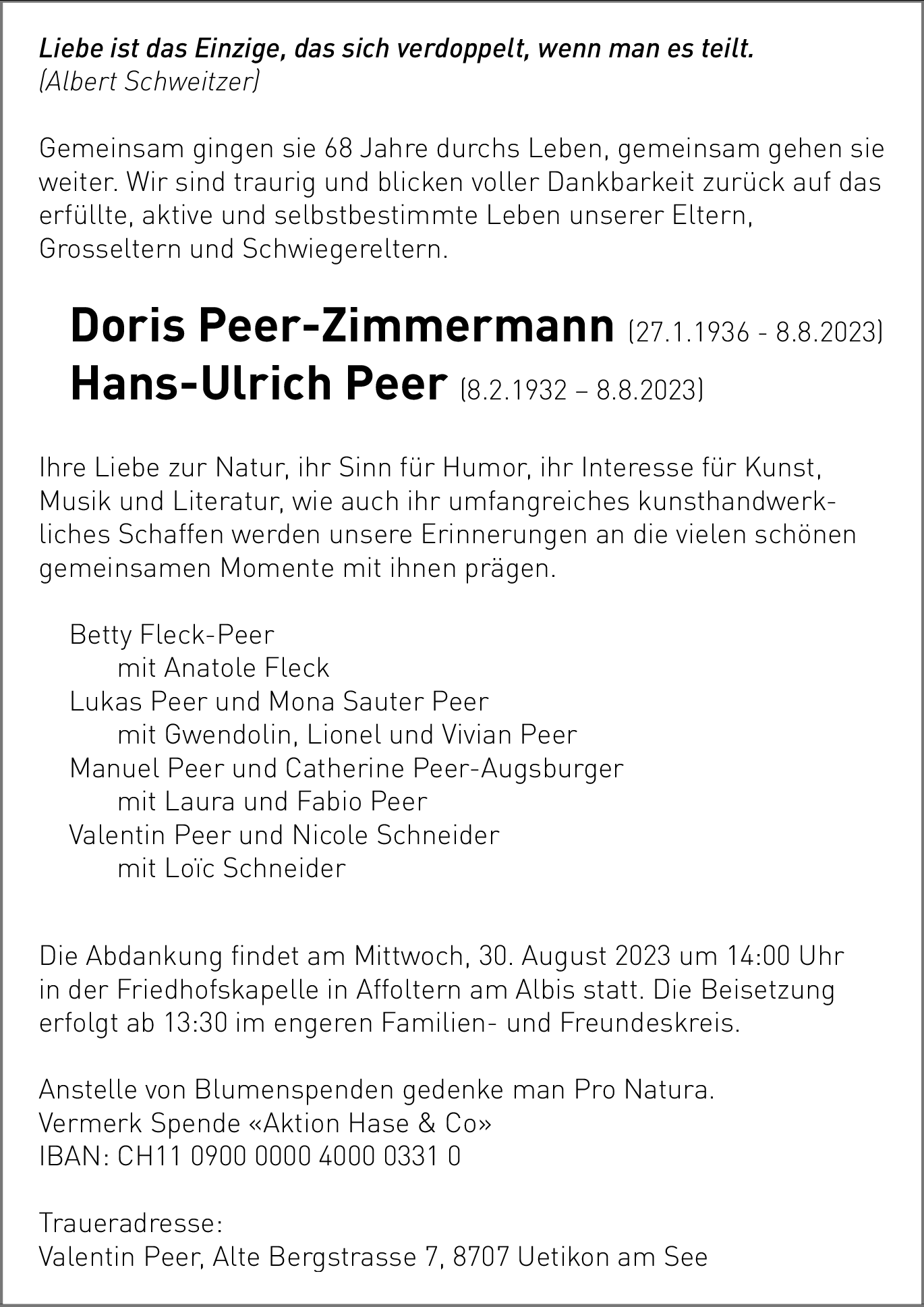 Doris und Hans-Ulrich Peer-Zimmermann