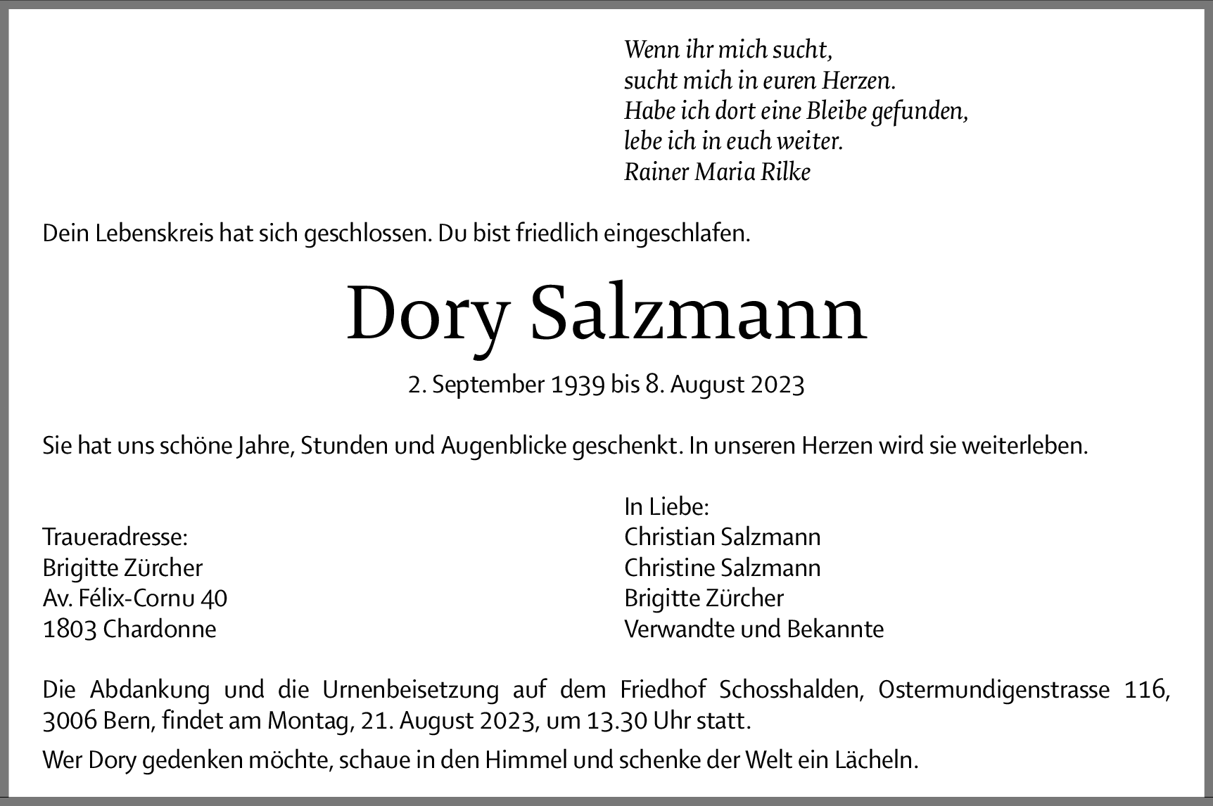 Möchten Sie über neue Todesanzeigen und Kondolenzen für diesen Verstorbenen informiert werden?