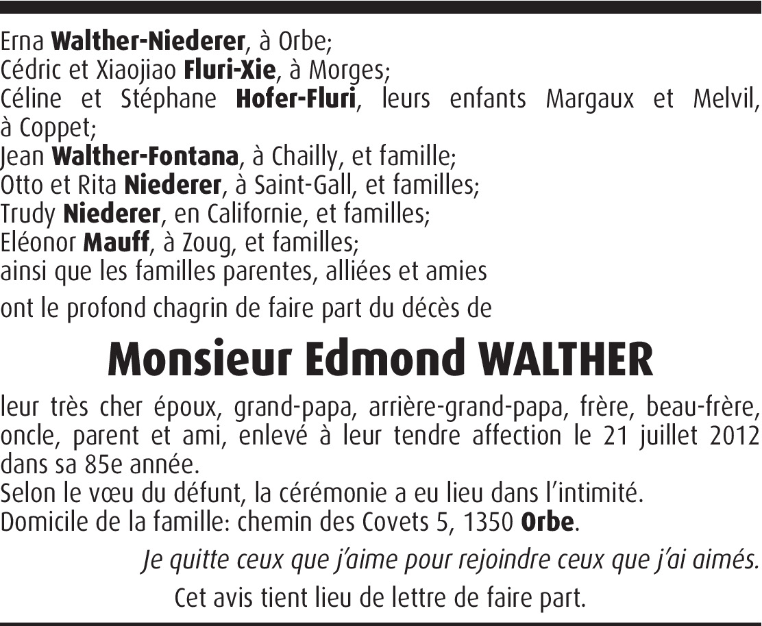 Vor mehr als 4 Jahren Melden Madame, Recevez, en famille, mes sincères condoléances. Von Marlyse Ermini-Desponds