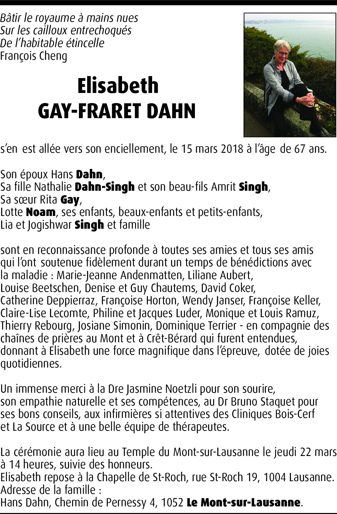 Vor mehr als 4 Jahren Melden Nous vous prions d'accepter notre respectueuse sympathie. Nous savons combien ce malheur vous atteint et tenons à ce que vous sachiez toute la part que nous prenons à votre douleur. Von Eli Noam