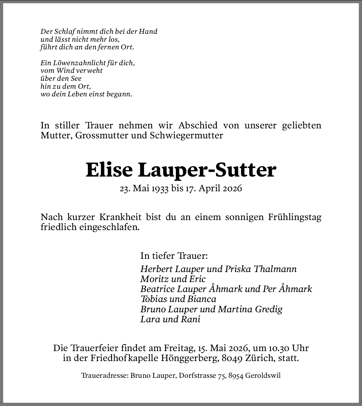 Möchten Sie über neue Todesanzeigen und Kondolenzen für diesen Verstorbenen informiert werden?