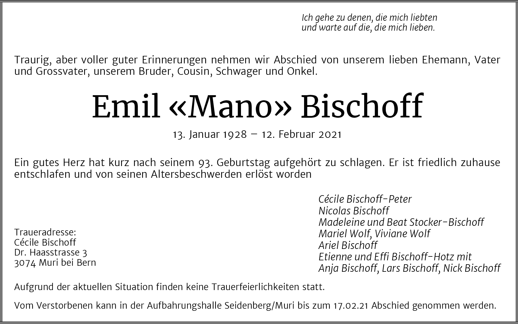 Möchten Sie über neue Todesanzeigen und Kondolenzen für diesen Verstorbenen informiert werden?