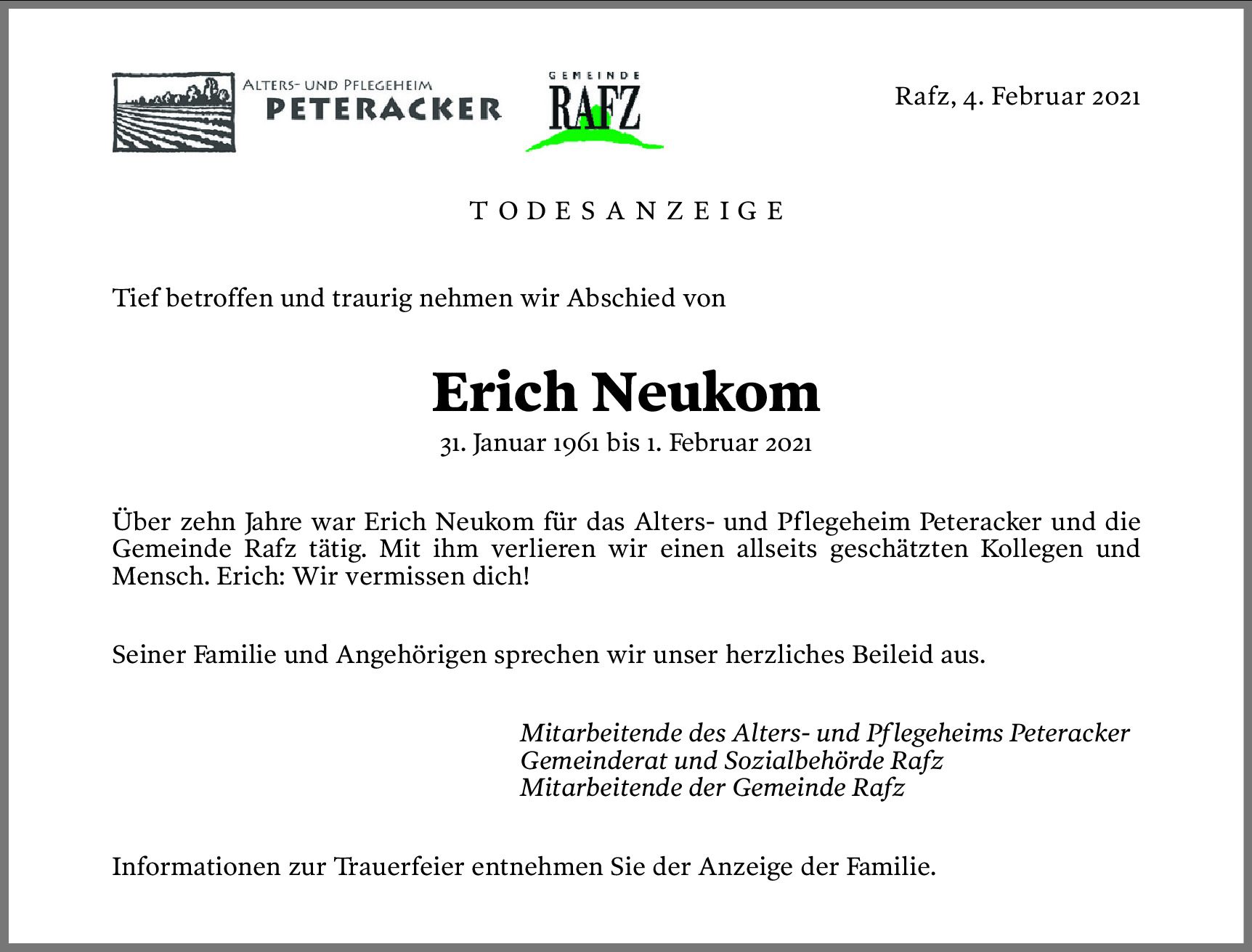 Möchten Sie über neue Todesanzeigen und Kondolenzen für diesen Verstorbenen informiert werden?