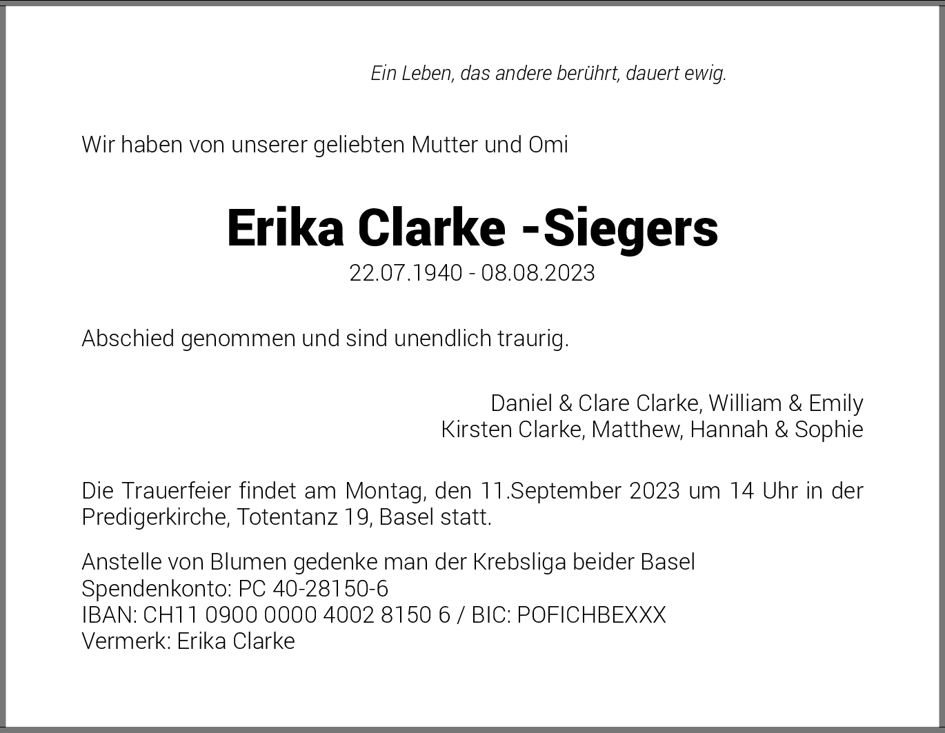 Möchten Sie über neue Todesanzeigen und Kondolenzen für diesen Verstorbenen informiert werden?