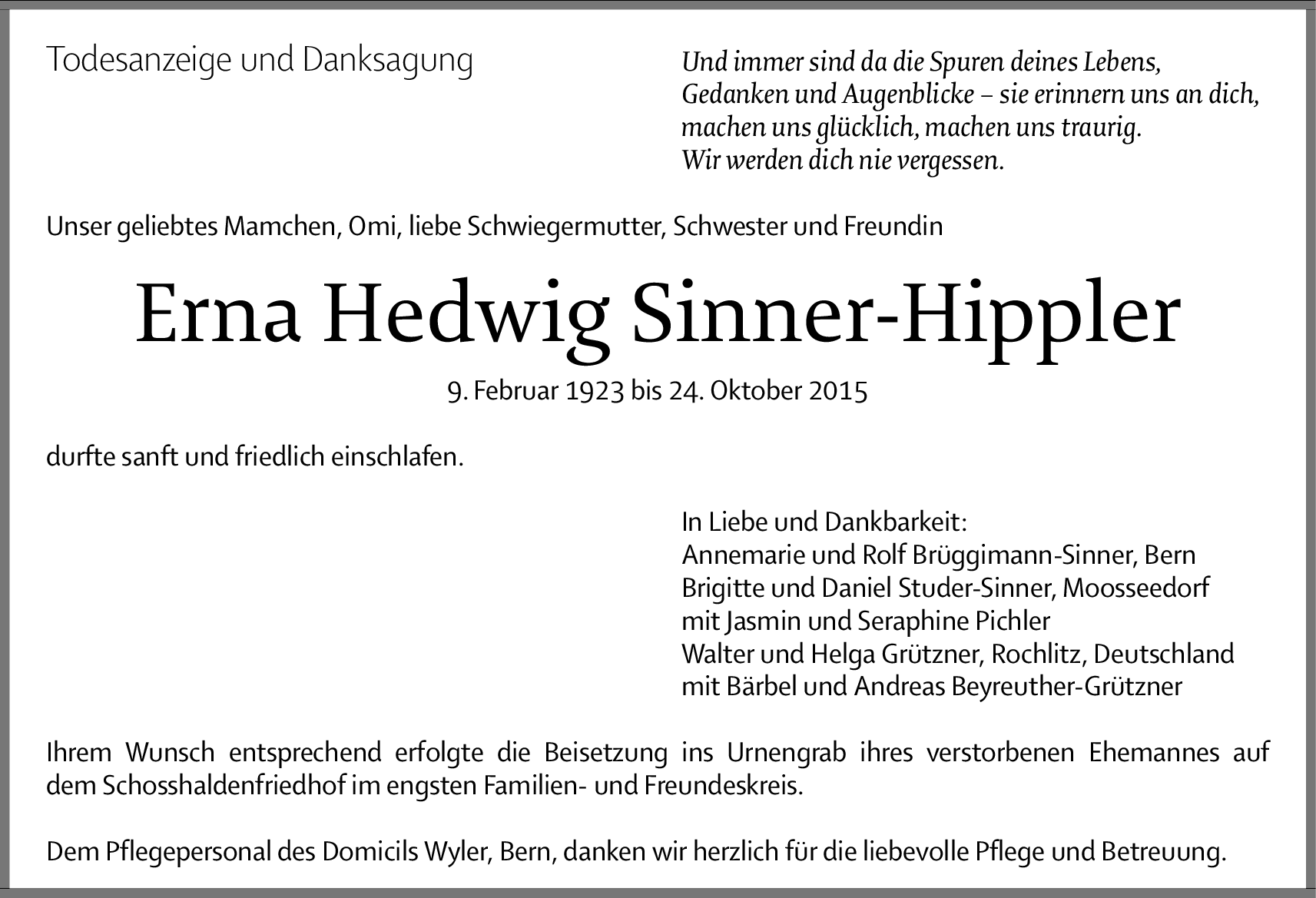 Möchten Sie über neue Todesanzeigen und Kondolenzen für diesen Verstorbenen informiert werden?