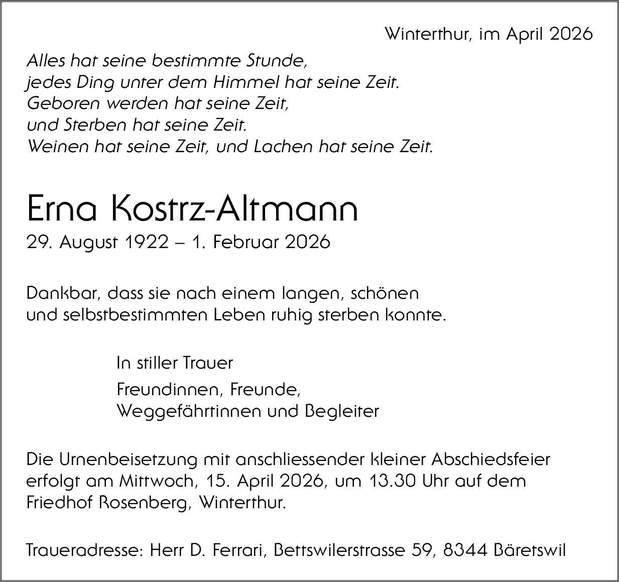 Möchten Sie über neue Todesanzeigen und Kondolenzen für diesen Verstorbenen informiert werden?
