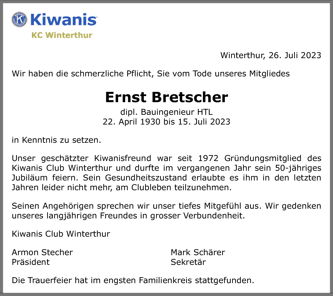 Möchten Sie über neue Todesanzeigen und Kondolenzen für diesen Verstorbenen informiert werden?