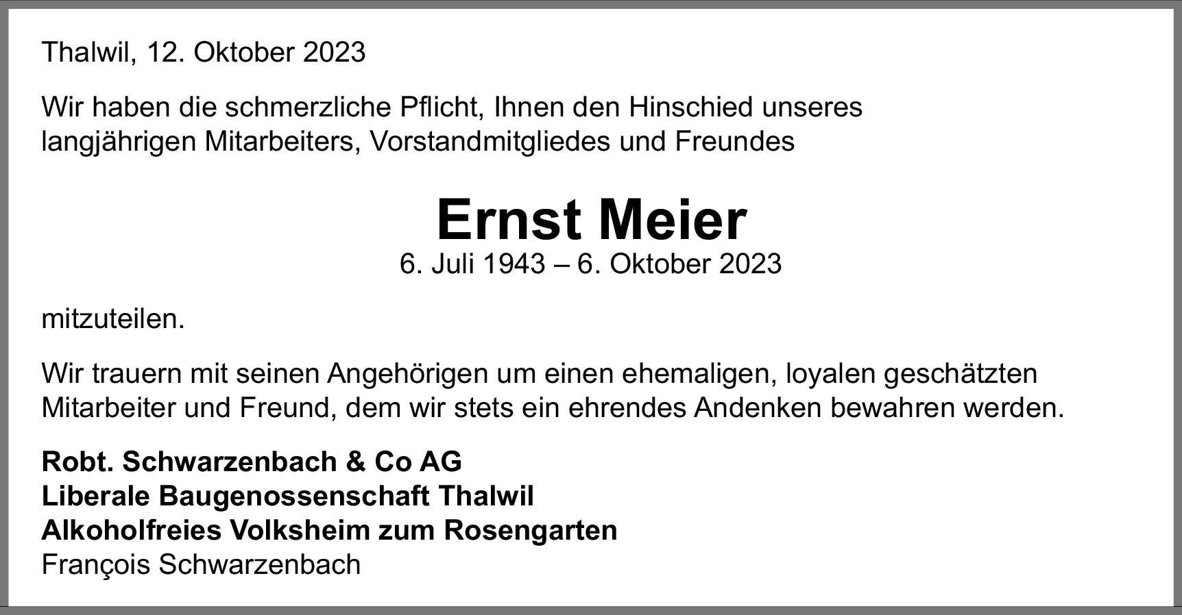 Möchten Sie über neue Todesanzeigen und Kondolenzen für diesen Verstorbenen informiert werden?