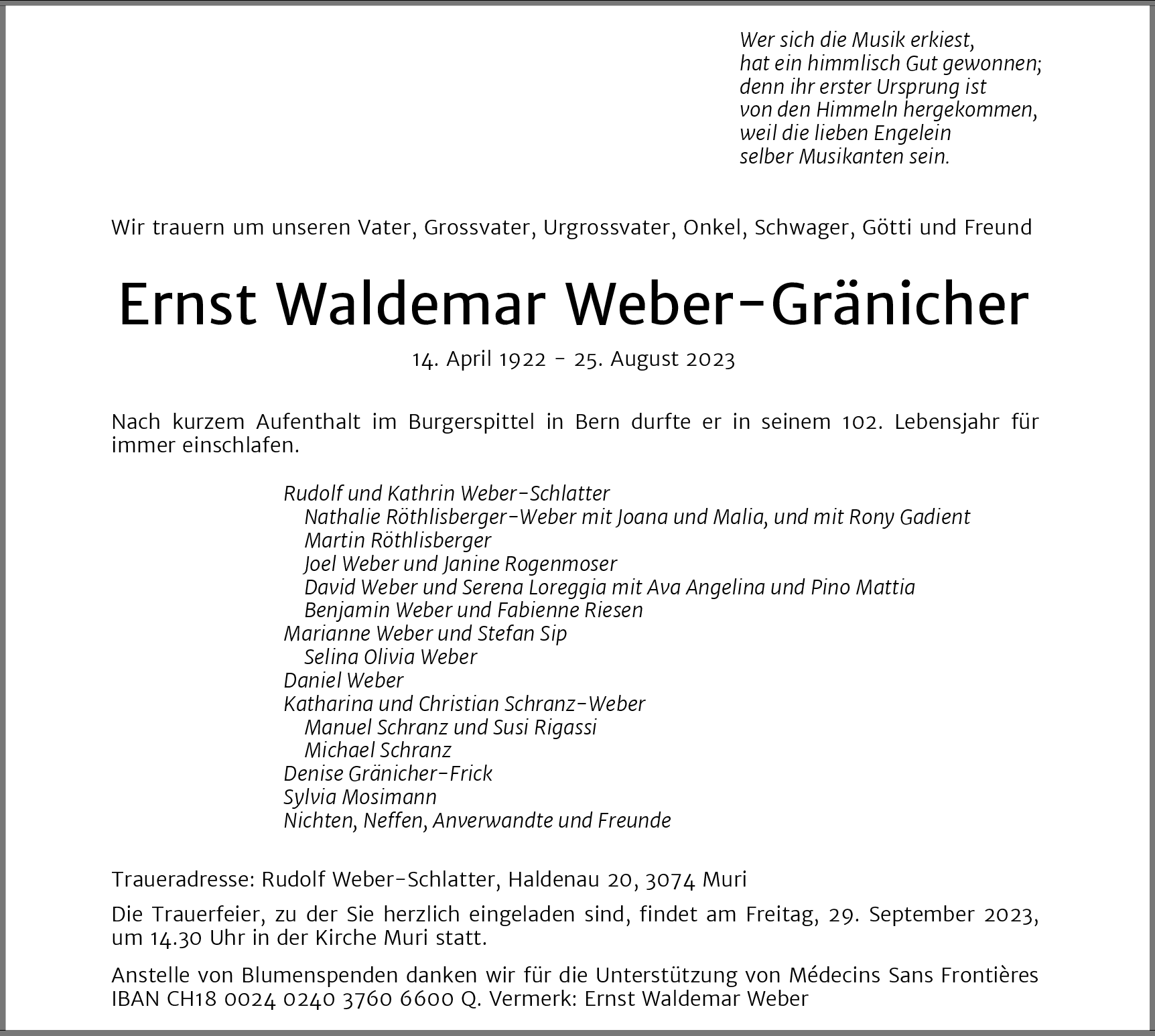 Möchten Sie über neue Todesanzeigen und Kondolenzen für diesen Verstorbenen informiert werden?