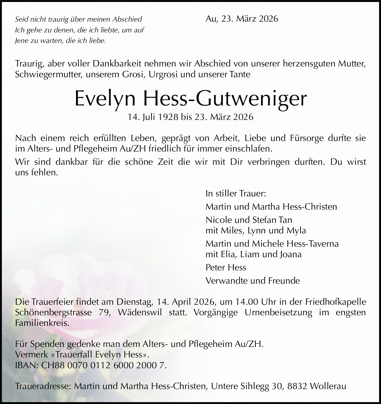 Möchten Sie über neue Todesanzeigen und Kondolenzen für diesen Verstorbenen informiert werden?