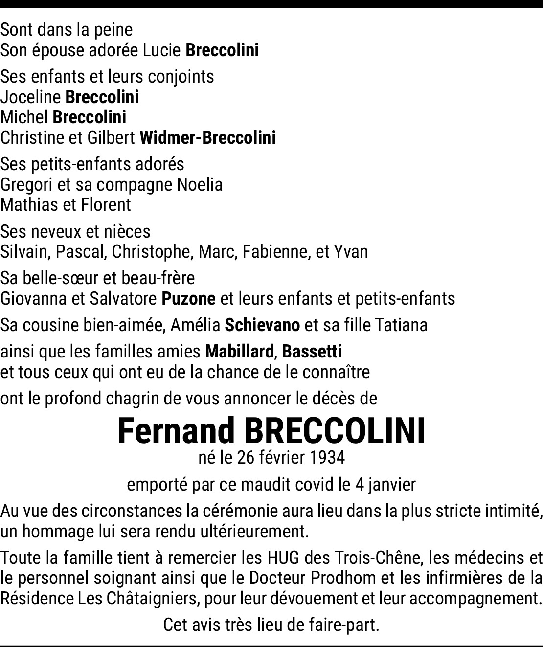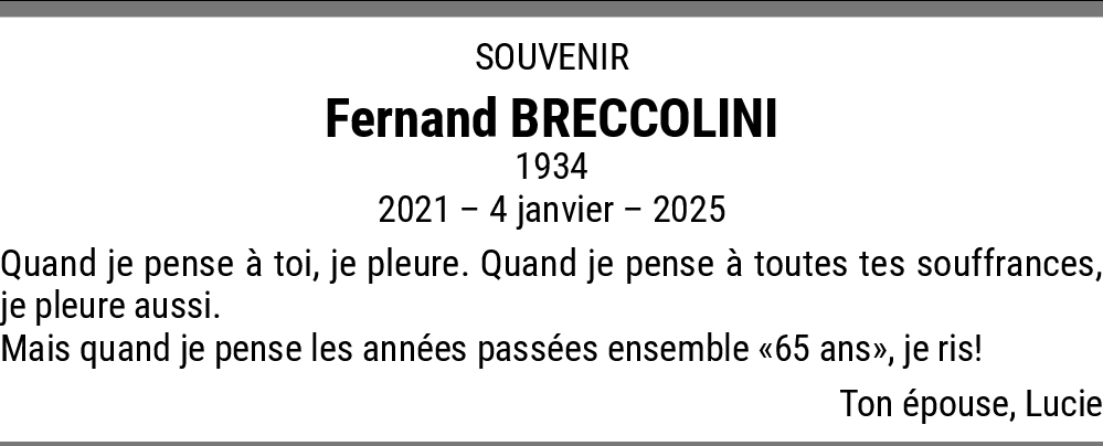 Ce message pour vous dire toute la tristesse que je ressens à l'annonce du décès de Fernand.