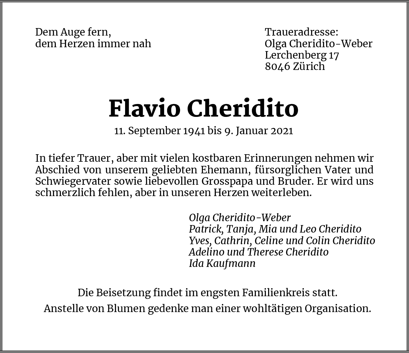 Möchten Sie über neue Todesanzeigen und Kondolenzen für diesen Verstorbenen informiert werden?
