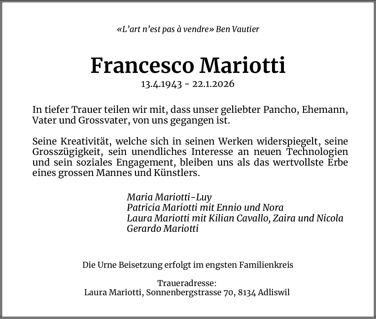 Möchten Sie über neue Todesanzeigen und Kondolenzen für diesen Verstorbenen informiert werden?