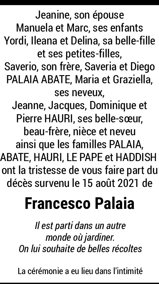 21.08.2021 Melden Toutes mes sincères condoléances à toute la famille de tout ❤ avec vous. R.I.P. Francesco 🙏 Von Nelli
