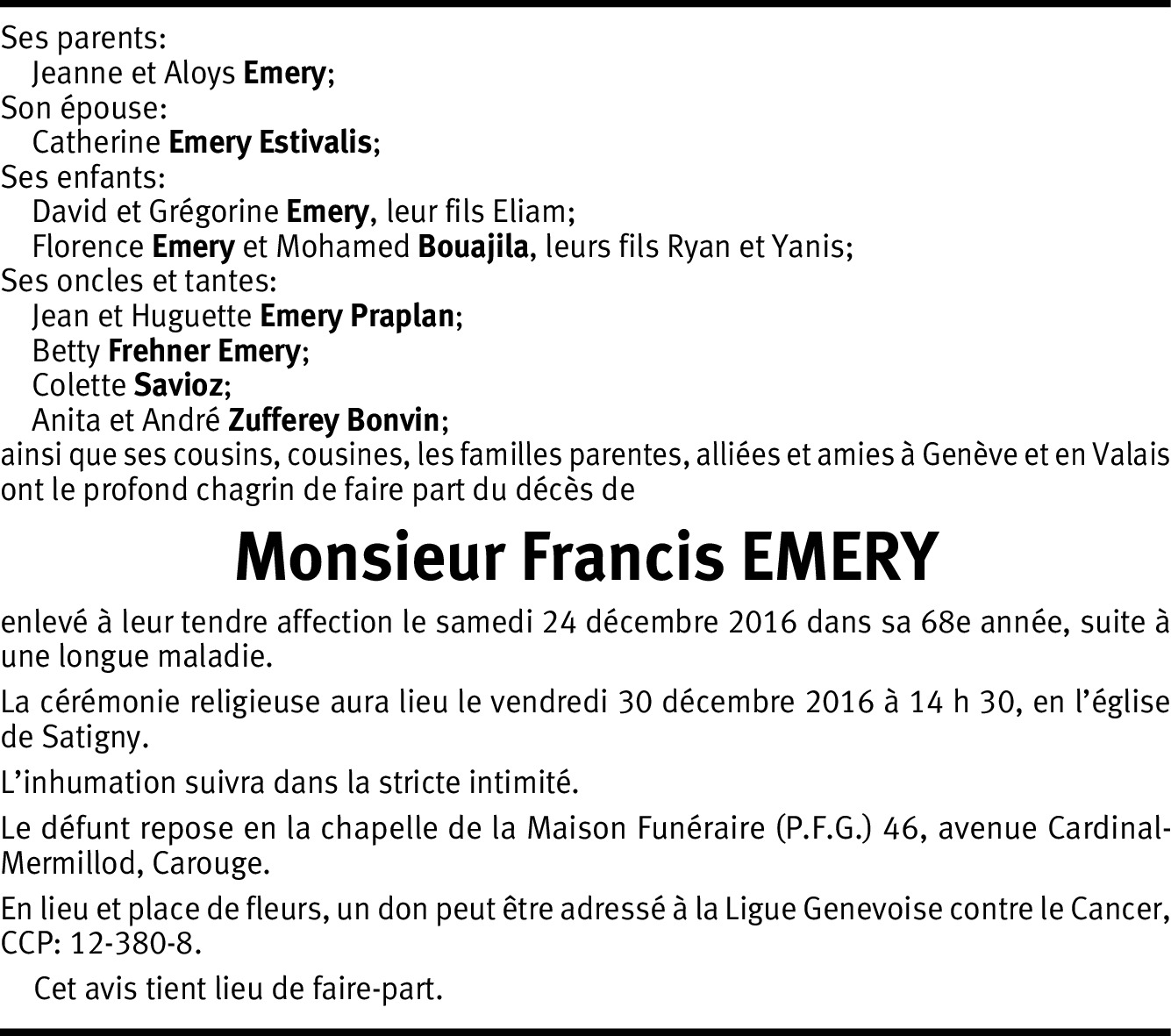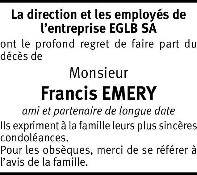 Veuillez recevoir mes sincères condoléances pour votre fils Francis que j'appréciais profondément.