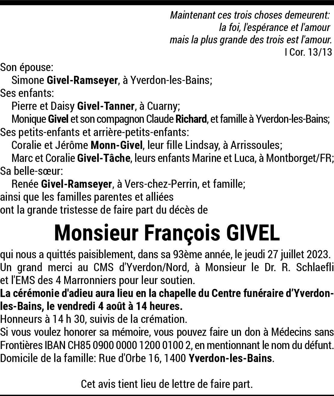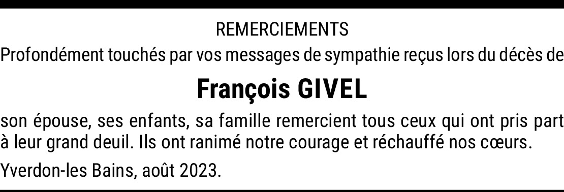Par ces quelques mots, je viens vous apporter toute ma sympathie durant ce temps de deuil et que vous puissiez garder le meilleur de François.