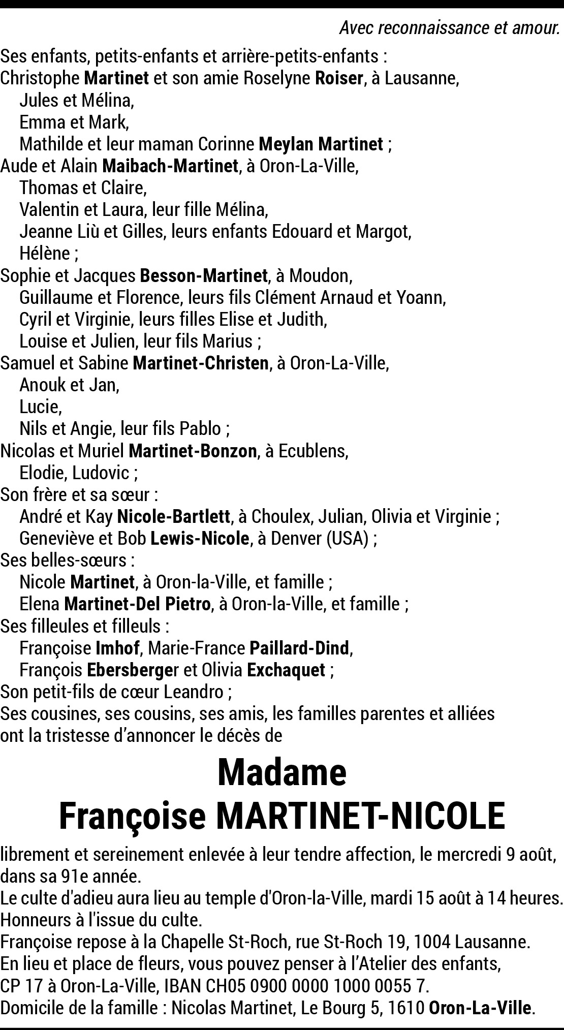 11.08.2023 Melden Chère famille, c'est avec tristesse que nous avons appris la nouvelle. En pensées avec vous en ces moments pénibles et sincères condoléances. Von Chappuis