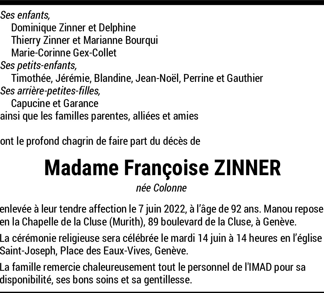 Françoise Zinner Colonne
