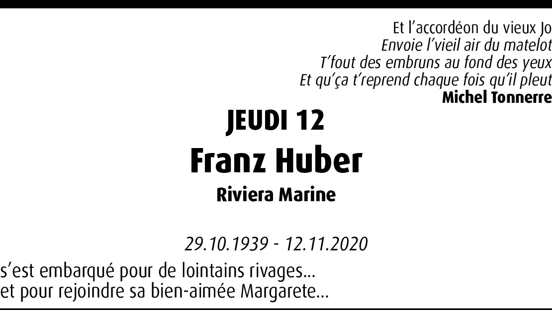 Vor mehr als 4 Jahren Melden Tu me manques déjà... Tu étais un de mes "tontons" du Port. Bon vent, cher ami <3 Von Sarah L.