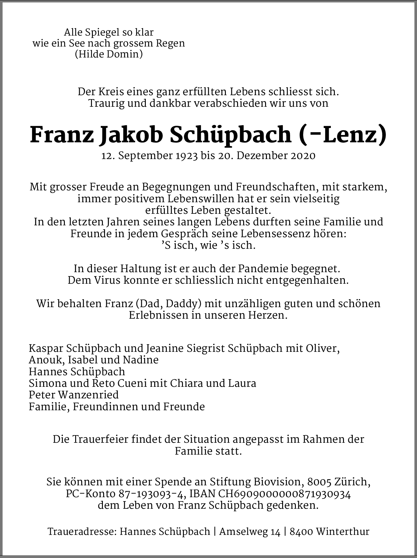 Möchten Sie über neue Todesanzeigen und Kondolenzen für diesen Verstorbenen informiert werden?