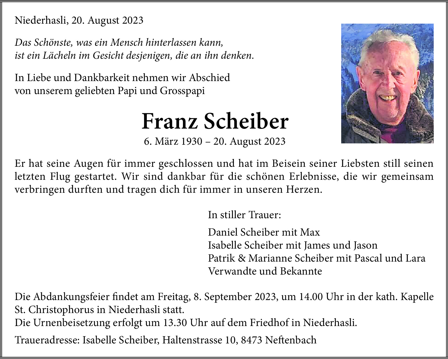 Möchten Sie über neue Todesanzeigen und Kondolenzen für diesen Verstorbenen informiert werden?