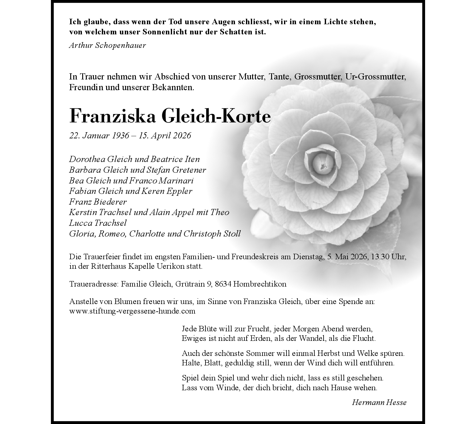 Möchten Sie über neue Todesanzeigen und Kondolenzen für diesen Verstorbenen informiert werden?