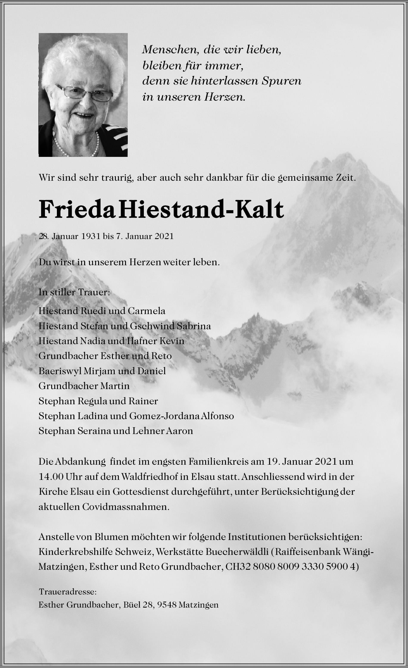 Frieda Hiestand-Kalt
