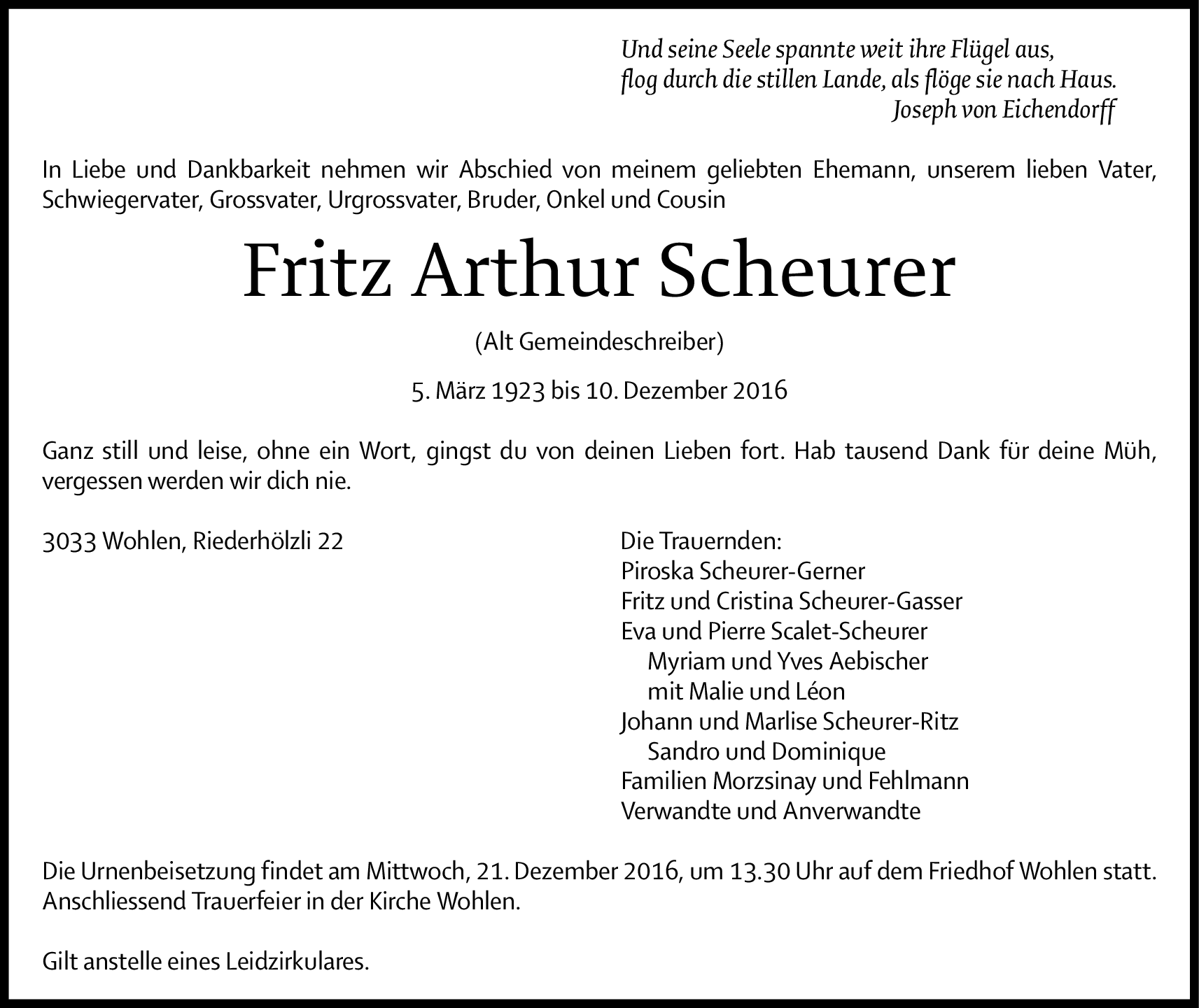 Möchten Sie über neue Todesanzeigen und Kondolenzen für diesen Verstorbenen informiert werden?