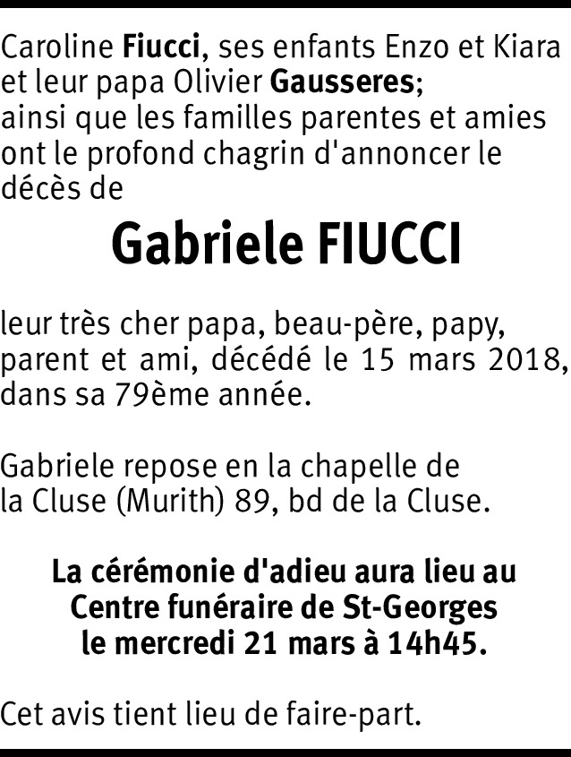 Chère Famille c’est avec tristesse que nous avons appris hier 24 mars le décès de notre cher voisin Gabriele. Il va nous manquer car il était souvent sur son balcon pour faire un coucou et demander: Tu maîtrises la situation.
