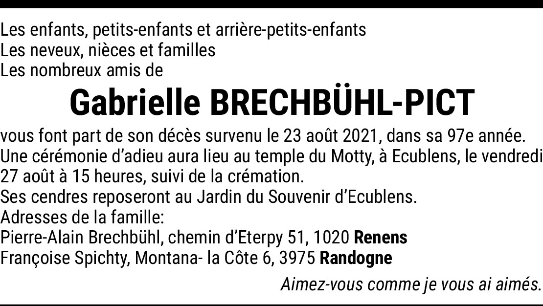 25.08.2021 Melden Chère Françoise et famille... en pensées avec vous tous... Je vous présente mes plus sincères condoléances... Au revoir Gaby... Bon voyage Von Mercier