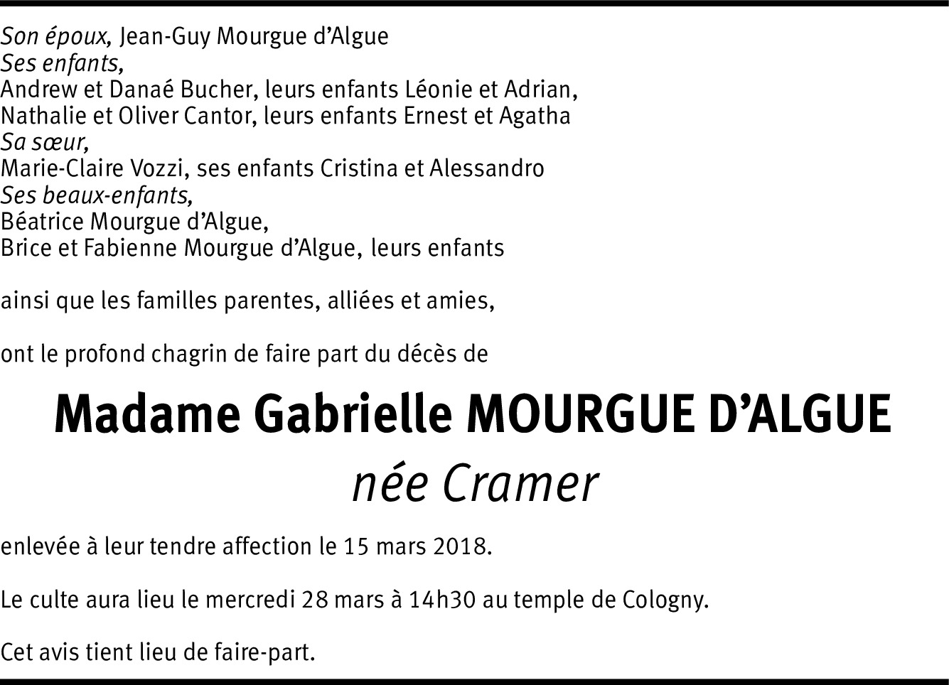 Gabrielle Mourgue d'Algue Cramer