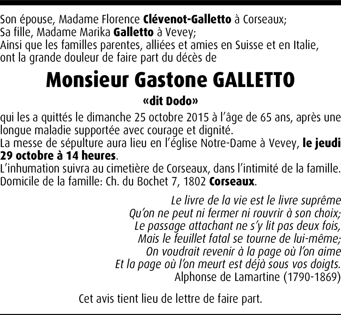 Mon cher Gaston,c'est avec tristesse que j'apprends ton décès depuis Montréal là où je réside. Nous avons partagé des grands moments dans la musique rock 'n'roll, je me rappel de toi comme si c'était hier; une jam a Vevey, une grande journée à Montreux. Tu étais un grand guitariste et maintenant tu joues au paradis. Merci de t'avoir connu. Repose en paix. Sincères condoléances a la famille. Christian