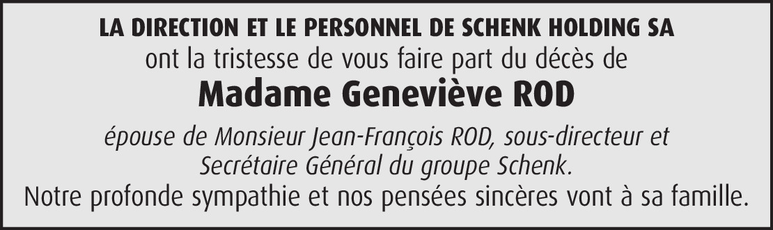 Chers Michelle et Vincent, chers enfants, Monsieur, c’est avec une profonde tristesse que nous avons appris à l’instant et par hasard le décès de Geneviève. Nous pensons fort à vous et aux enfants dans ces moments de grande douleur et nous vous adressons nos sincères condoléances.