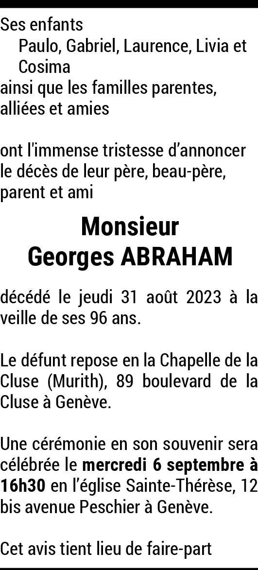 Je suis très attristée, car le professeur Georges Abraham a été l'un de mes professeurs et mon analyste lorsque j'étais encore étudiante en psychologie.