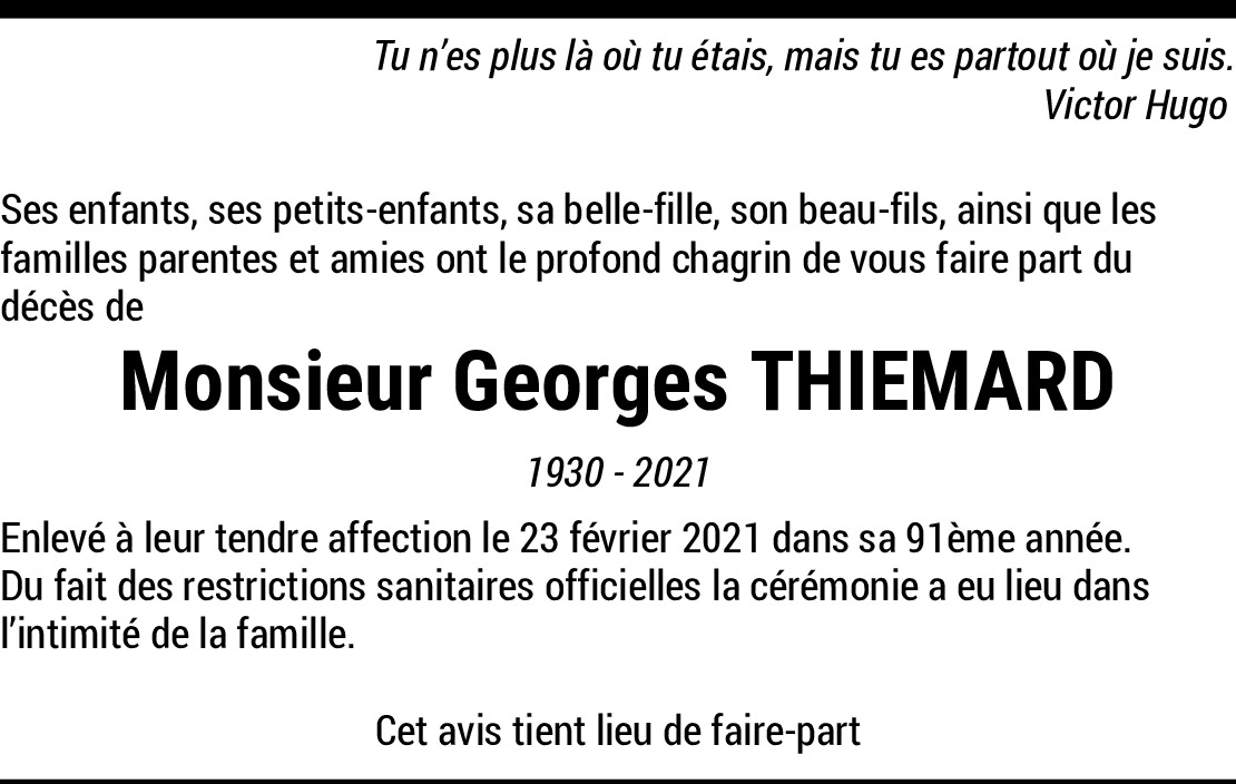 C'est avec une grande tristesse que nous avons appris le décès de Georges. Les personnes que nous aimons quittent un jour nos yeux mais jamais notre cœur, les voyages et soirées que nous avons fait ensemble resteront à jamais gravé dans nos mémoires. Georges est parti pour un autre voyage mais chaque nuit il illuminera nos nuit, il faudra juste lever la tête et regarder le ciel.