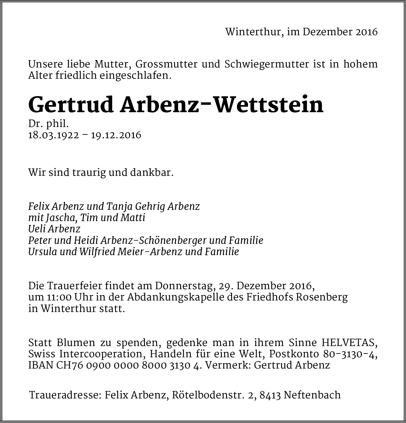 Gertrud Arbenz-Wettstein
