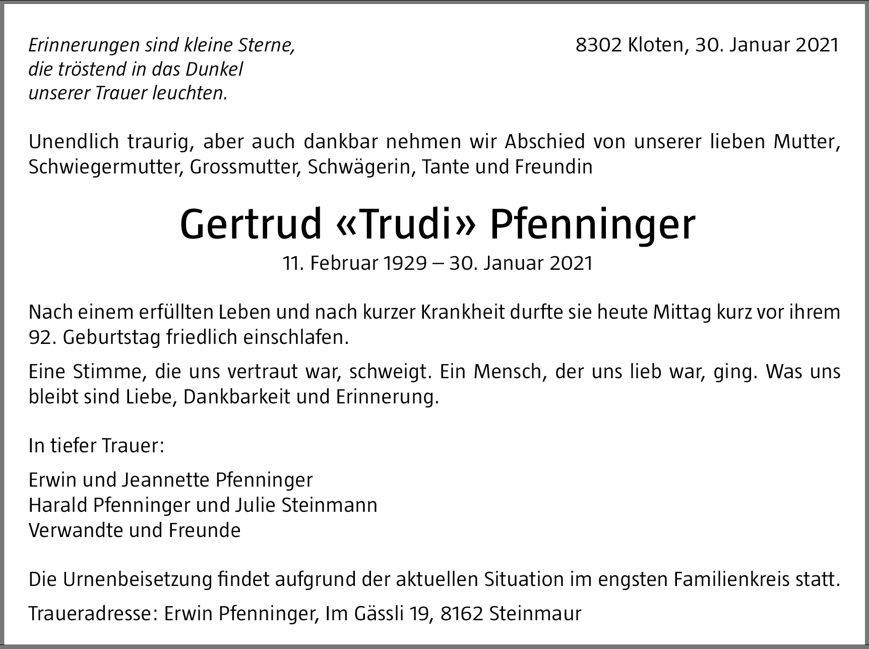 Möchten Sie über neue Todesanzeigen und Kondolenzen für diesen Verstorbenen informiert werden?