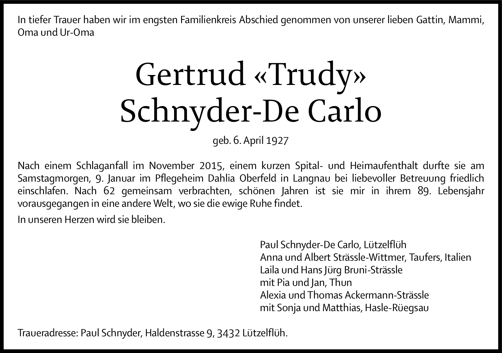 Gertrud Schnyder-De Carlo