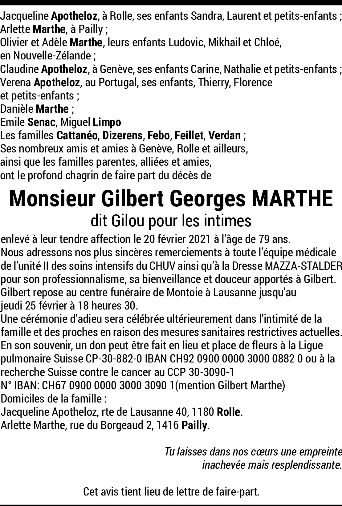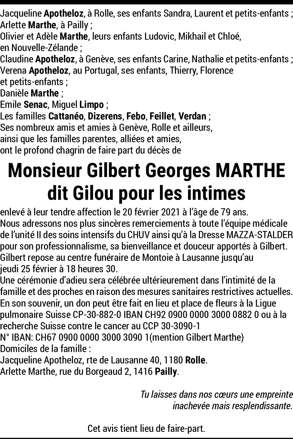 C'est avec une douleur immense d'avoir appris le départ de Gilou, un ami exceptionnel et une personne si chère qu'il aura toujours une très grande place dans nos cœurs. Tant de magnifiques moments passés avec Gilou qui ne nous quitteront pas. Gilou nous manque déjà tellement.