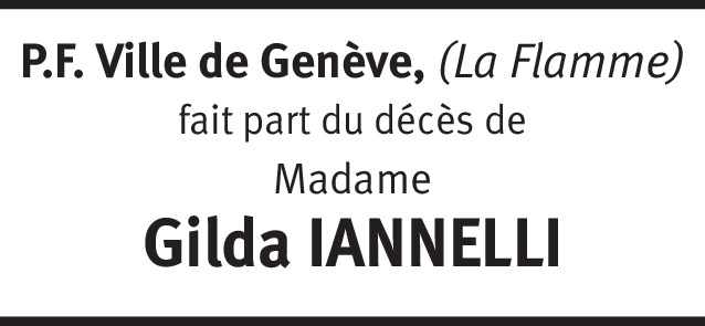 Vor mehr als 4 Jahren Melden Cher Monsieur Iannelli et famille. Nous vous présentons nos sincères condoléances. Nous gardons un souvenir de Madame Gilda Iannelli comme une femme gentille, joviale. Qu'elle repose en paix! Amen! Von Olivier Et Stéphanie