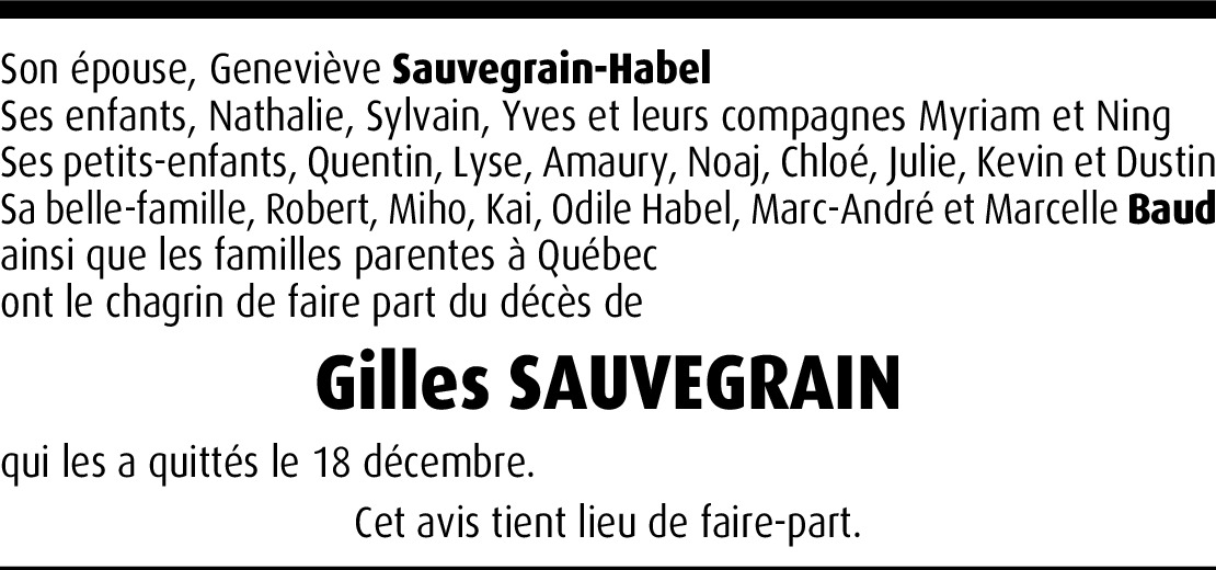 J'offre mes plus sincères condoléances à Geneviève ainsi qu'à toute la famille
