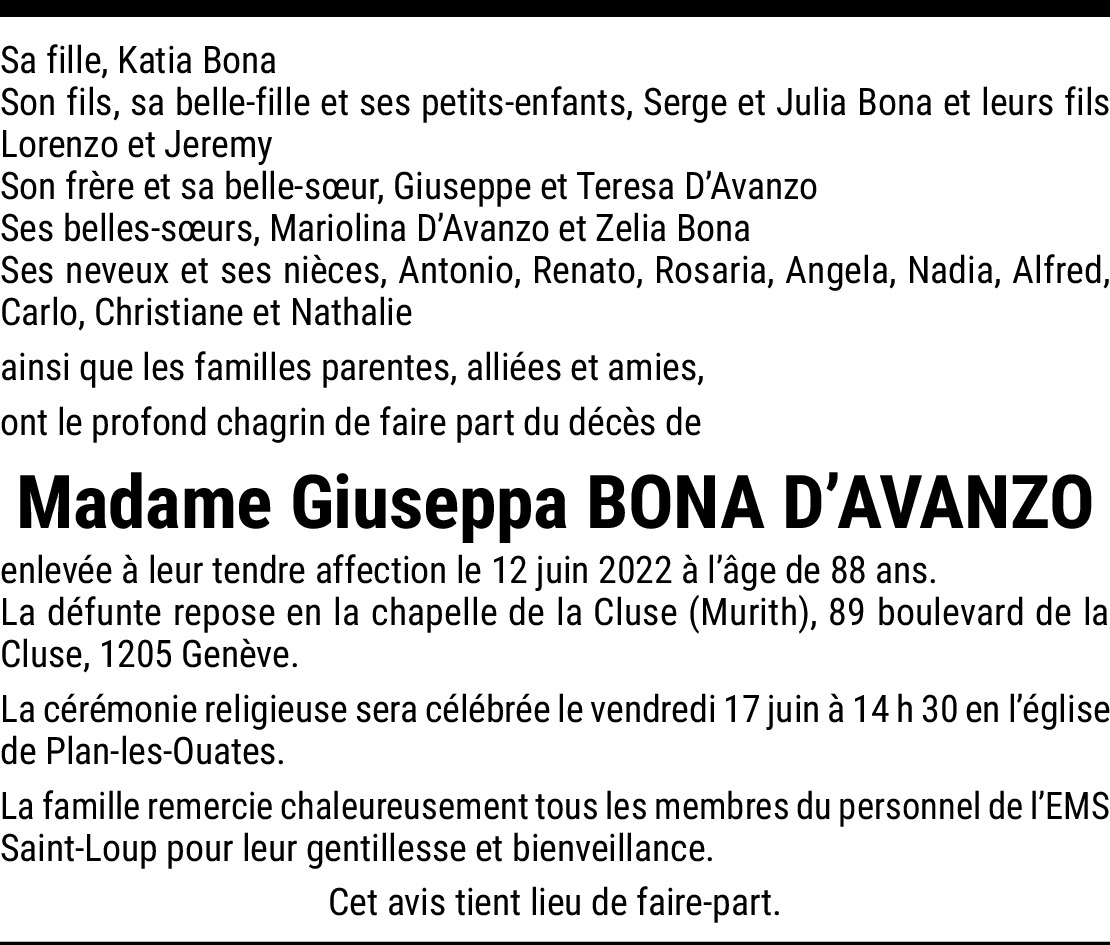 Giuseppa Bona D'Avanzo
