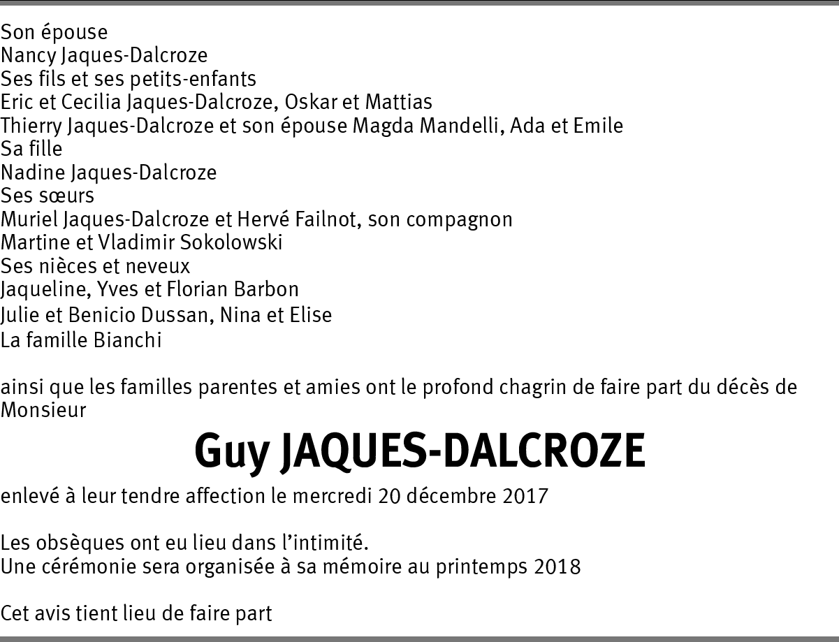 This evening I was thinking of the wonderful time we had togteher in Garches and found the message of Guy’s passing when I looked you up at internet.